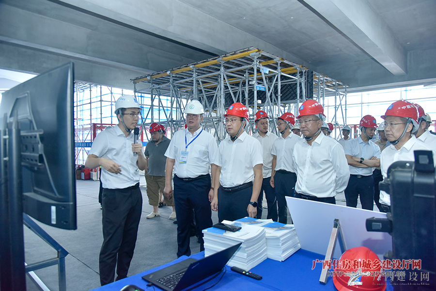 在南寧市廣西建設(shè)職業(yè)技術(shù)學(xué)院新校區(qū)項(xiàng)目和桂林市交投·和順江畔項(xiàng)目現(xiàn)場(chǎng),以圖文展板、實(shí)物展示、視頻演示等形式,分層次、分步驟展現(xiàn)部分施工環(huán)節(jié)的工藝流程和數(shù)字化建造過(guò)程,以及科學(xué)合理的動(dòng)態(tài)管理模式。與會(huì)代表深入施工一線邊走邊看,圍繞工程項(xiàng)目智能化建造、標(biāo)準(zhǔn)化樣板、先進(jìn)技術(shù)工藝等方面開(kāi)展觀摩交流。