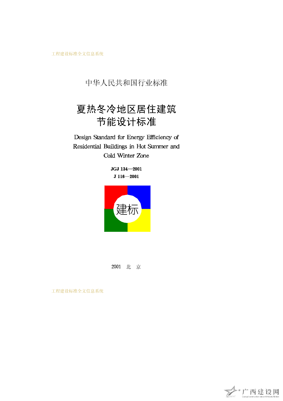 夏熱冬冷地區居住建筑節能設計標準 JGJ134—2001