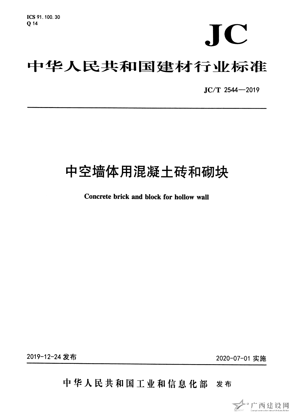 JC T2544-2019 中空墻體用混凝土磚和砌塊