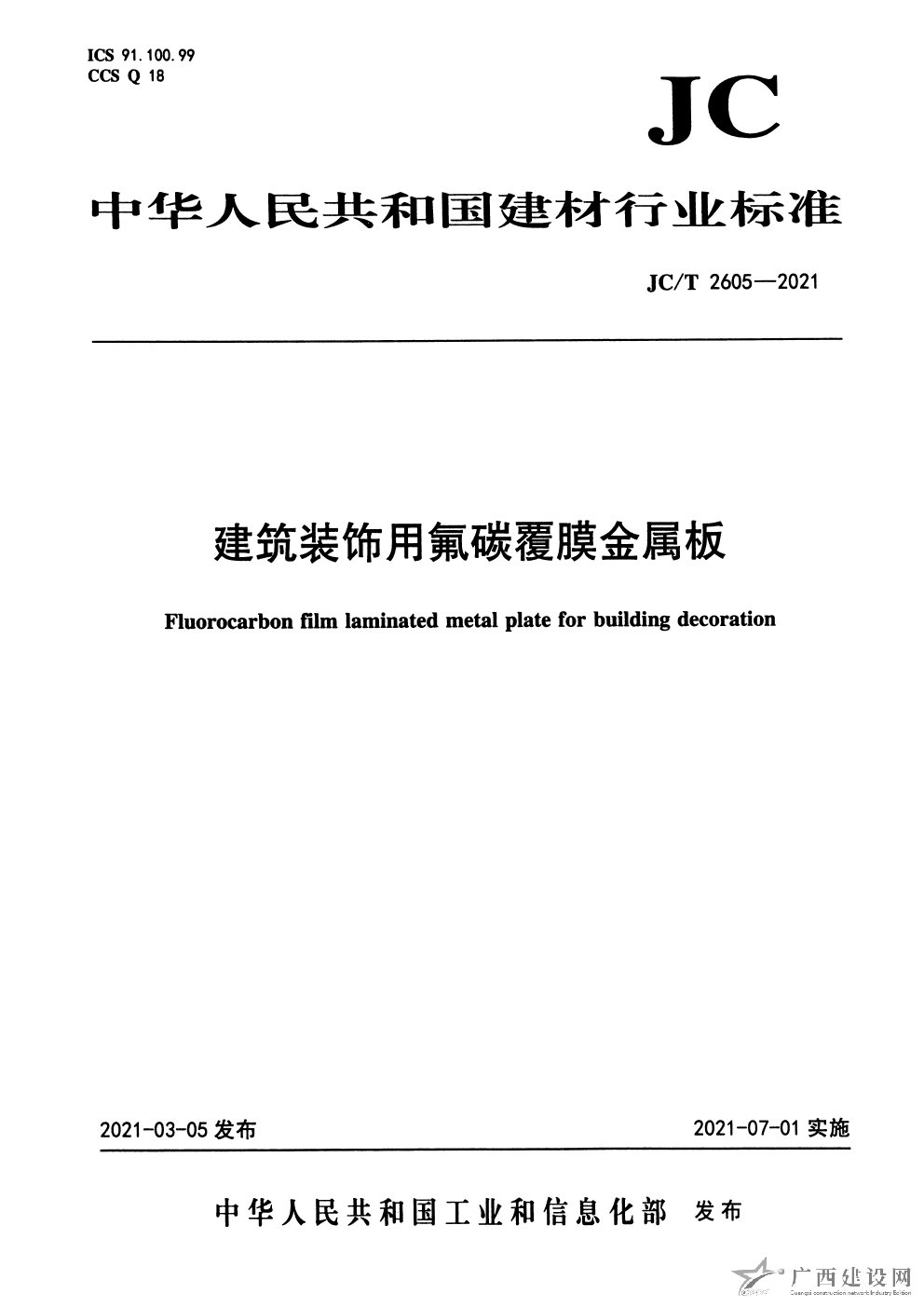 JC T 2605-2021 建筑裝飾用氟碳覆膜金屬板