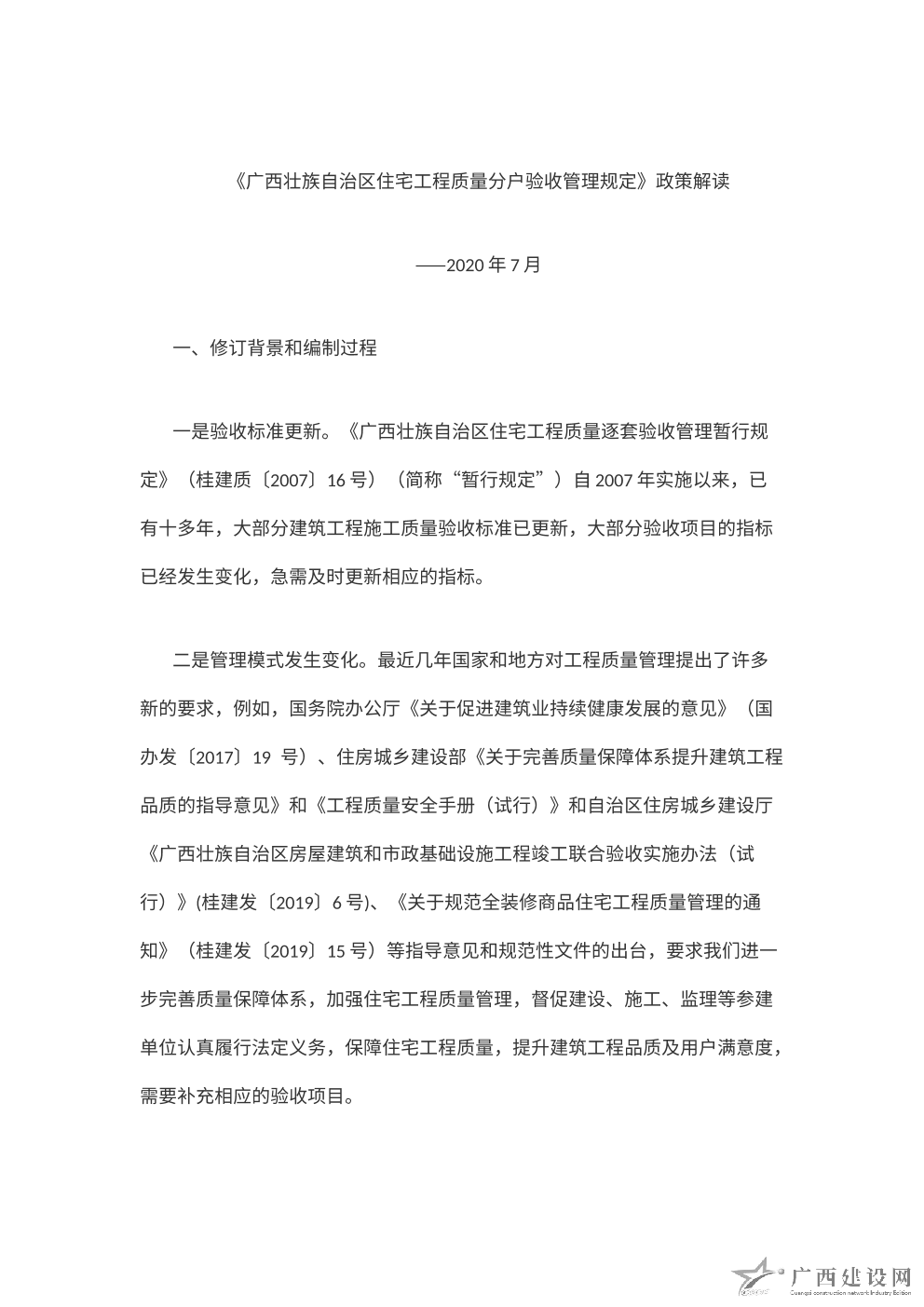 《廣西壯族自治區(qū)住宅工程質(zhì)量分戶驗(yàn)收管理規(guī)定》政策解讀