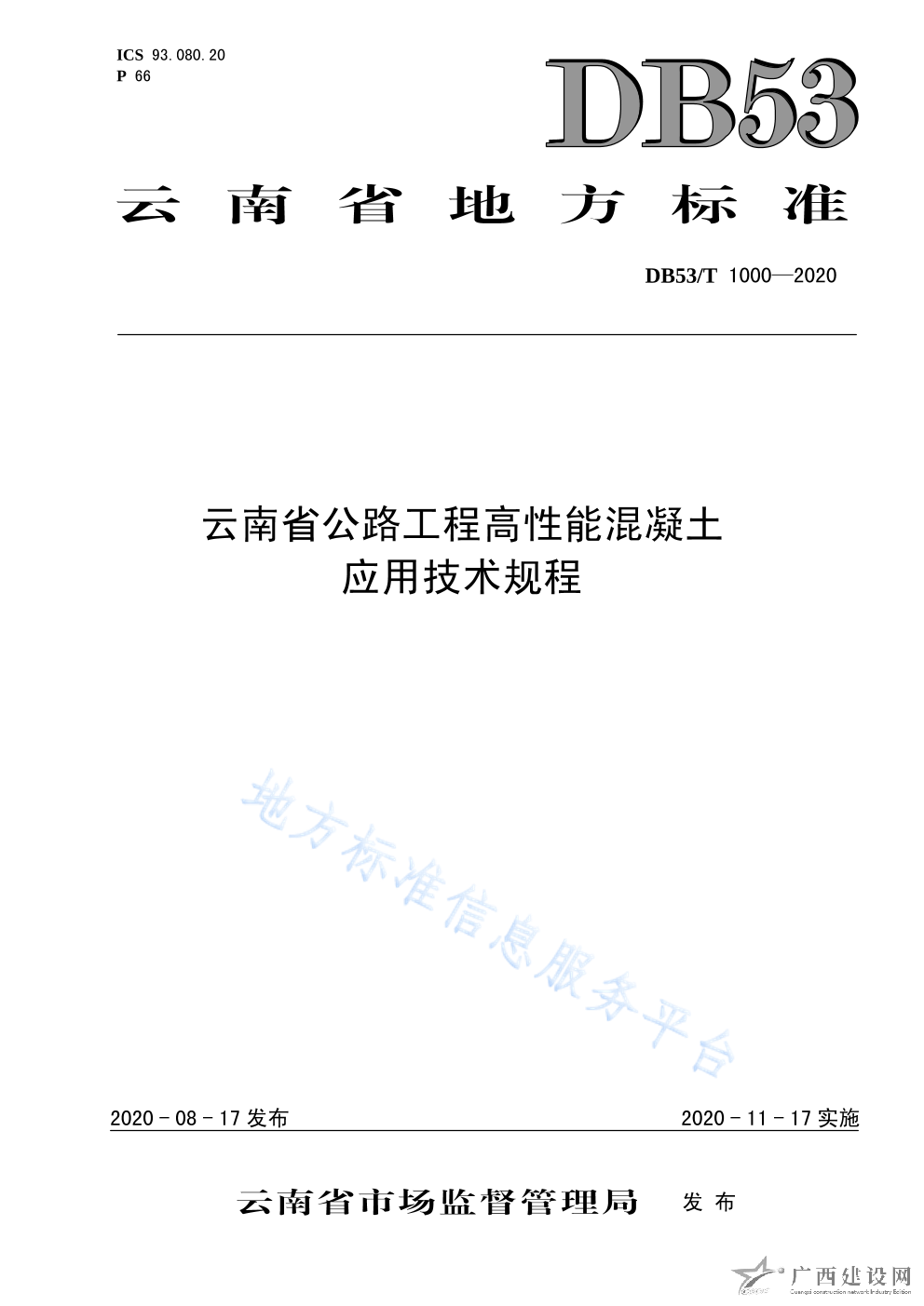 DB53 T1000-2020云南省公路工程高性能混凝土應(yīng)用技術(shù)規(guī)程