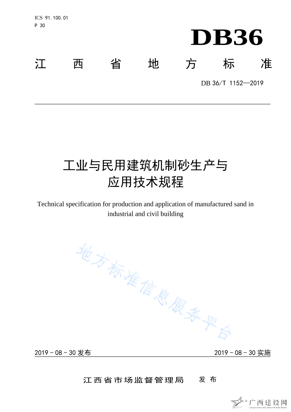 DB36 T1152-2019工業(yè)與民用建筑機制砂生產(chǎn)與應(yīng)用技術(shù)規(guī)程