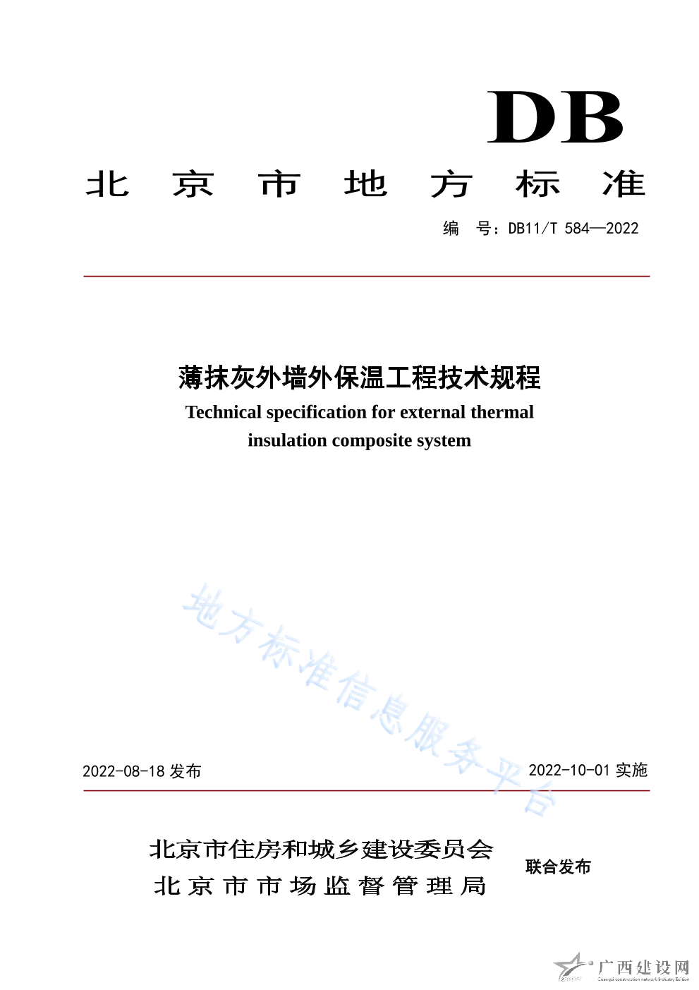 DB11 T+584-2022薄抹灰外墻外保溫工程技術規程