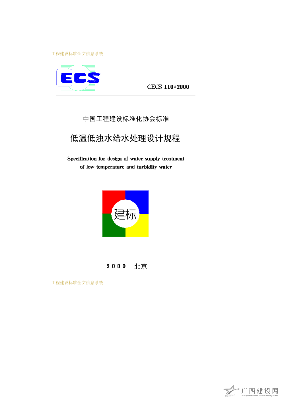 低溫低濁水給水處理設計規程 CECS110∶2000