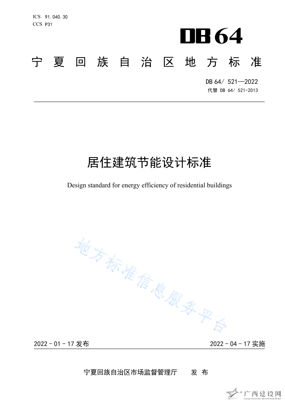 DB64 521-2022居住建筑節(jié)能設(shè)計(jì)標(biāo)準(zhǔn)