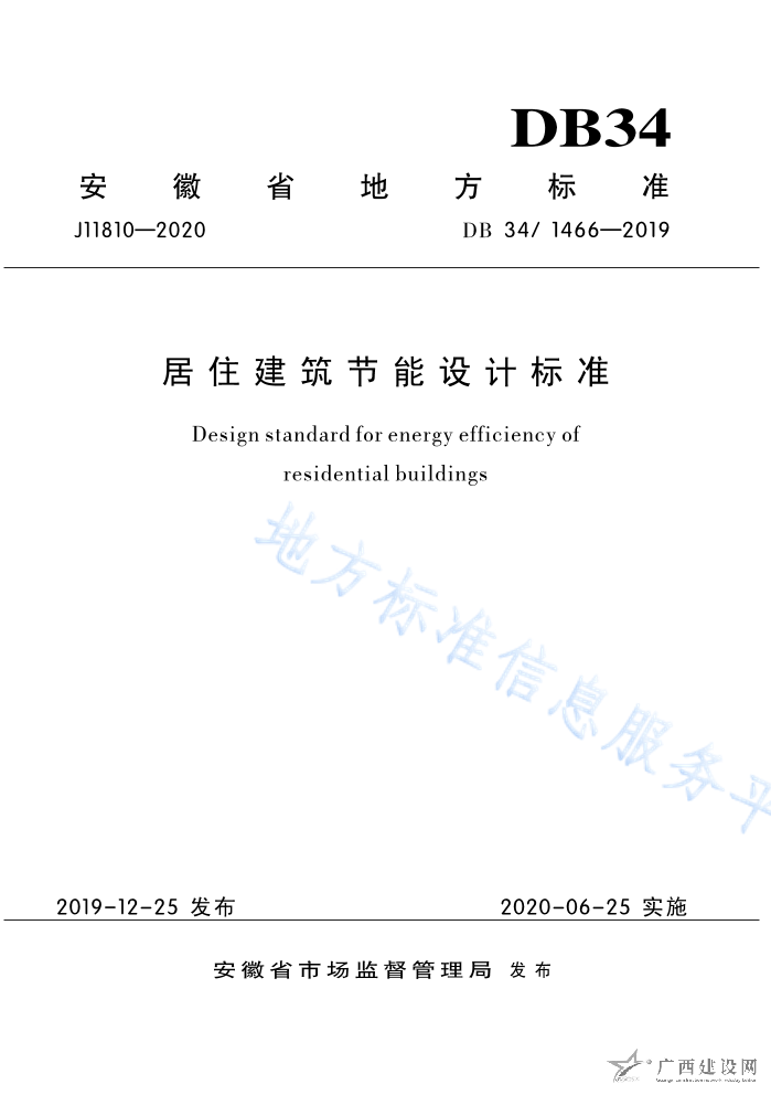 DB34 1466-2019居住建筑節(jié)能設(shè)計(jì)標(biāo)準(zhǔn)