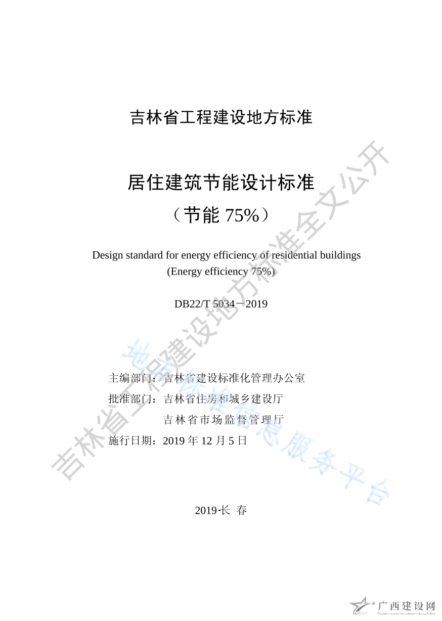 DB22 5034-2019居住建筑節(jié)能設(shè)計(jì)標(biāo)準(zhǔn)(節(jié)能75%)