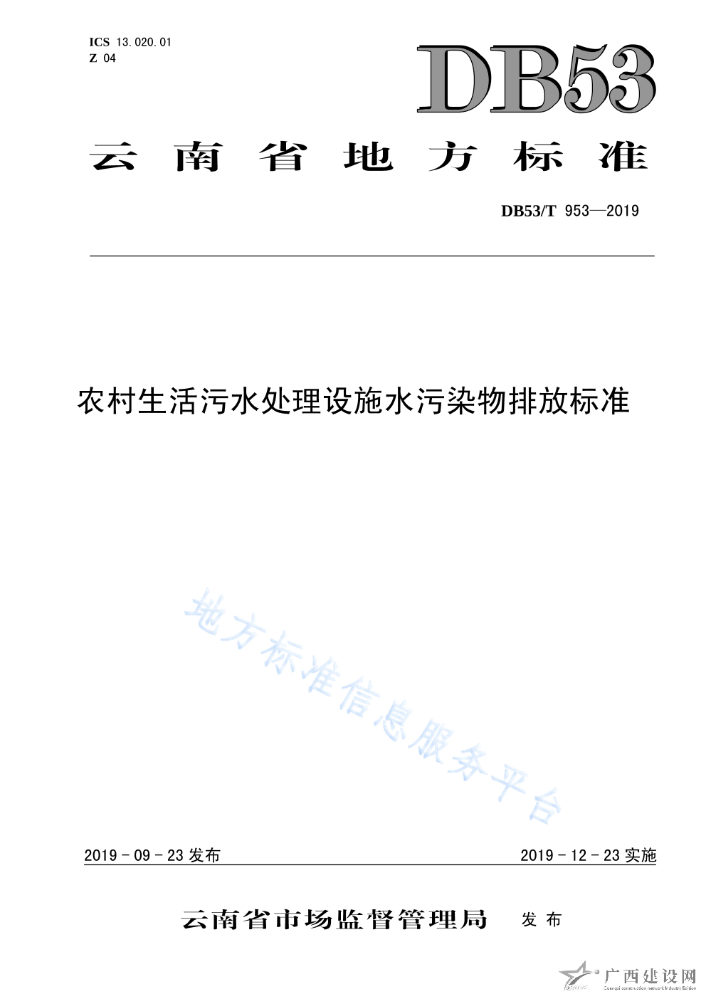 DB53 T953-2019農(nóng)村生活污水處理設(shè)施水污染物排放標(biāo)準(zhǔn)