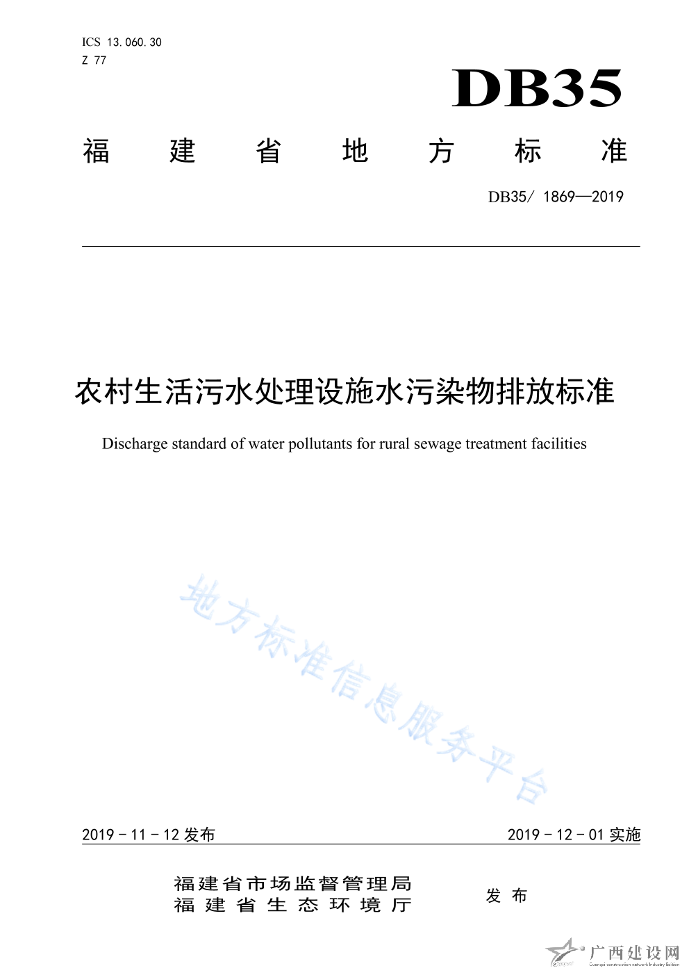 DB35 1869-2019農(nóng)村生活污水處理設(shè)施水污染物排放標(biāo)準(zhǔn)