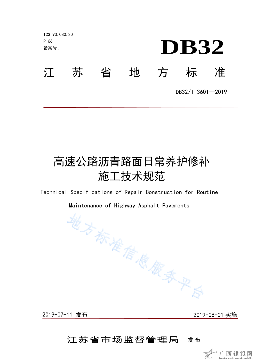 DB32 T3601-2019高速公路瀝青路面日常養(yǎng)護修補施工技術(shù)規(guī)范