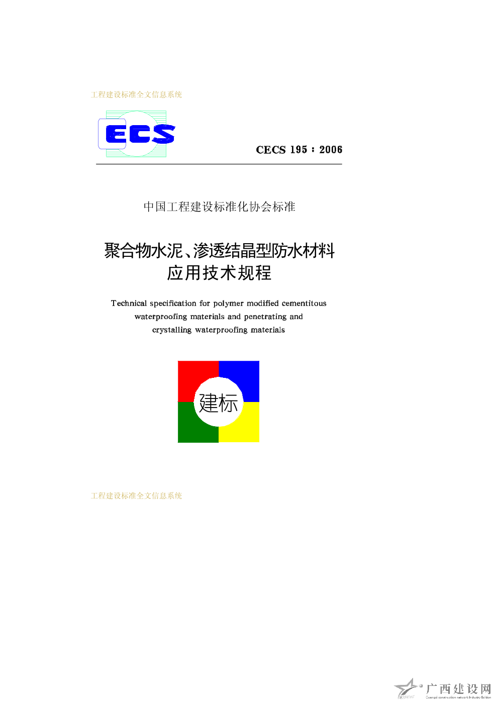 聚合物水泥、滲透結(jié)晶型防水材料應(yīng)用技術(shù)規(guī)程 CECS195-2006