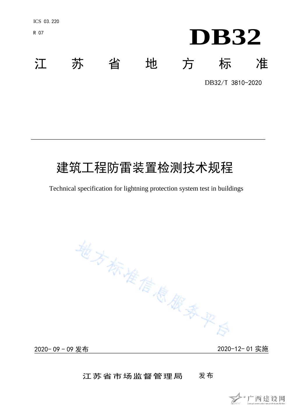 DB32 T3811-2020建筑工程防雷裝置施工質量驗收規程