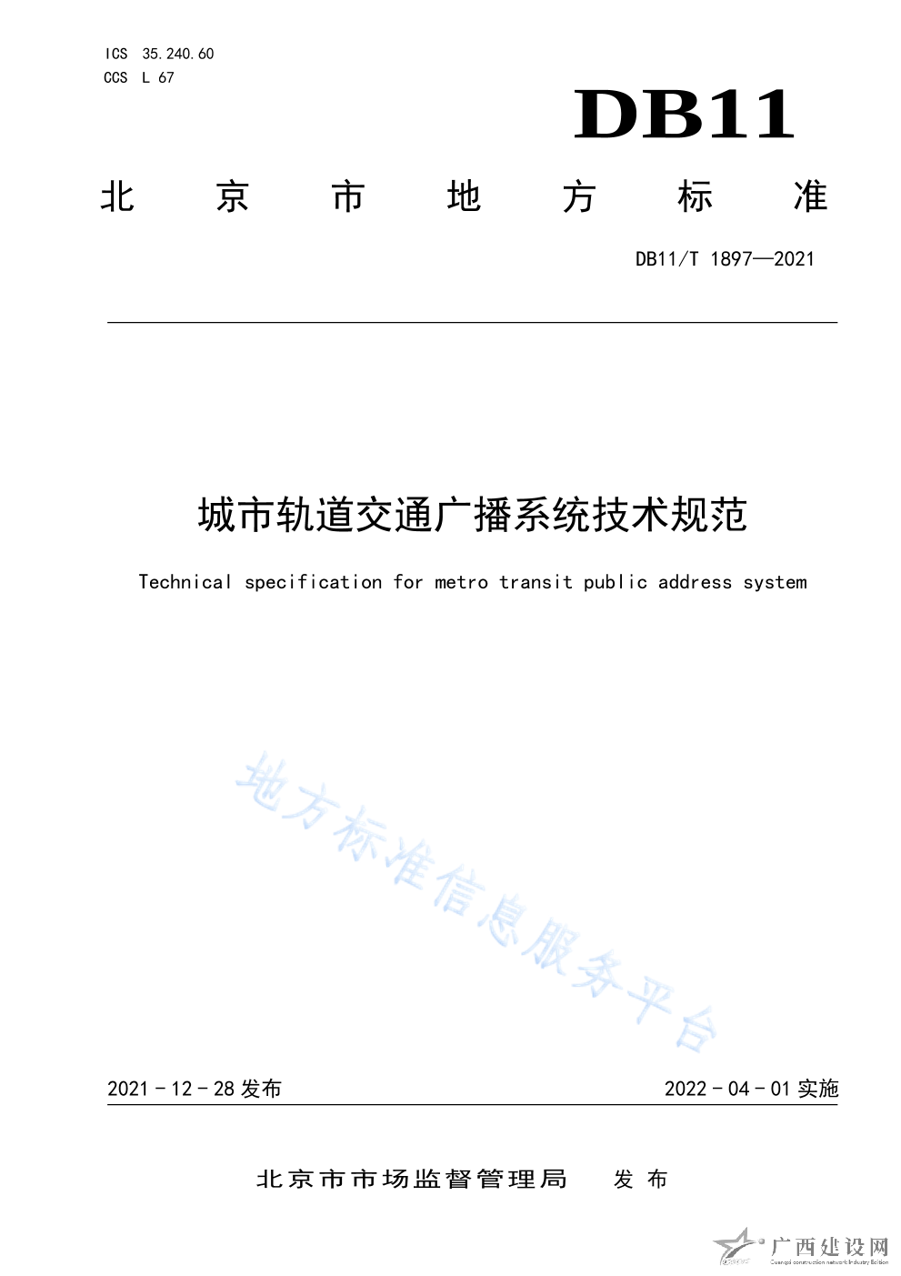 DB11 T+1897-2021城市軌道交通廣播系統技術規范