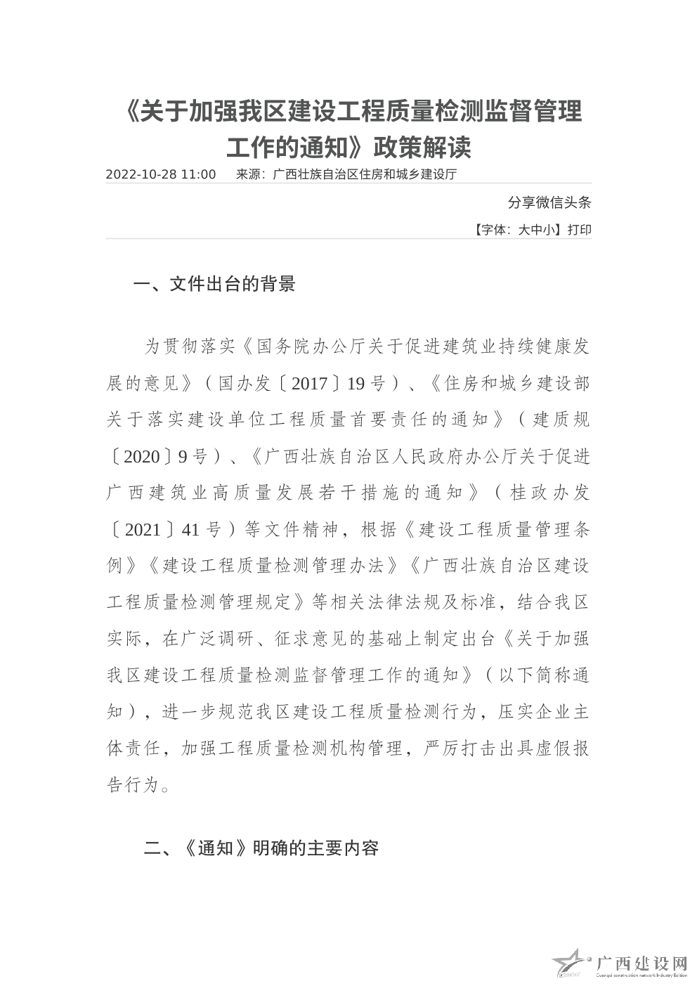 《關于加強我區建設工程質量檢測監督管理工作的通知》政策解讀