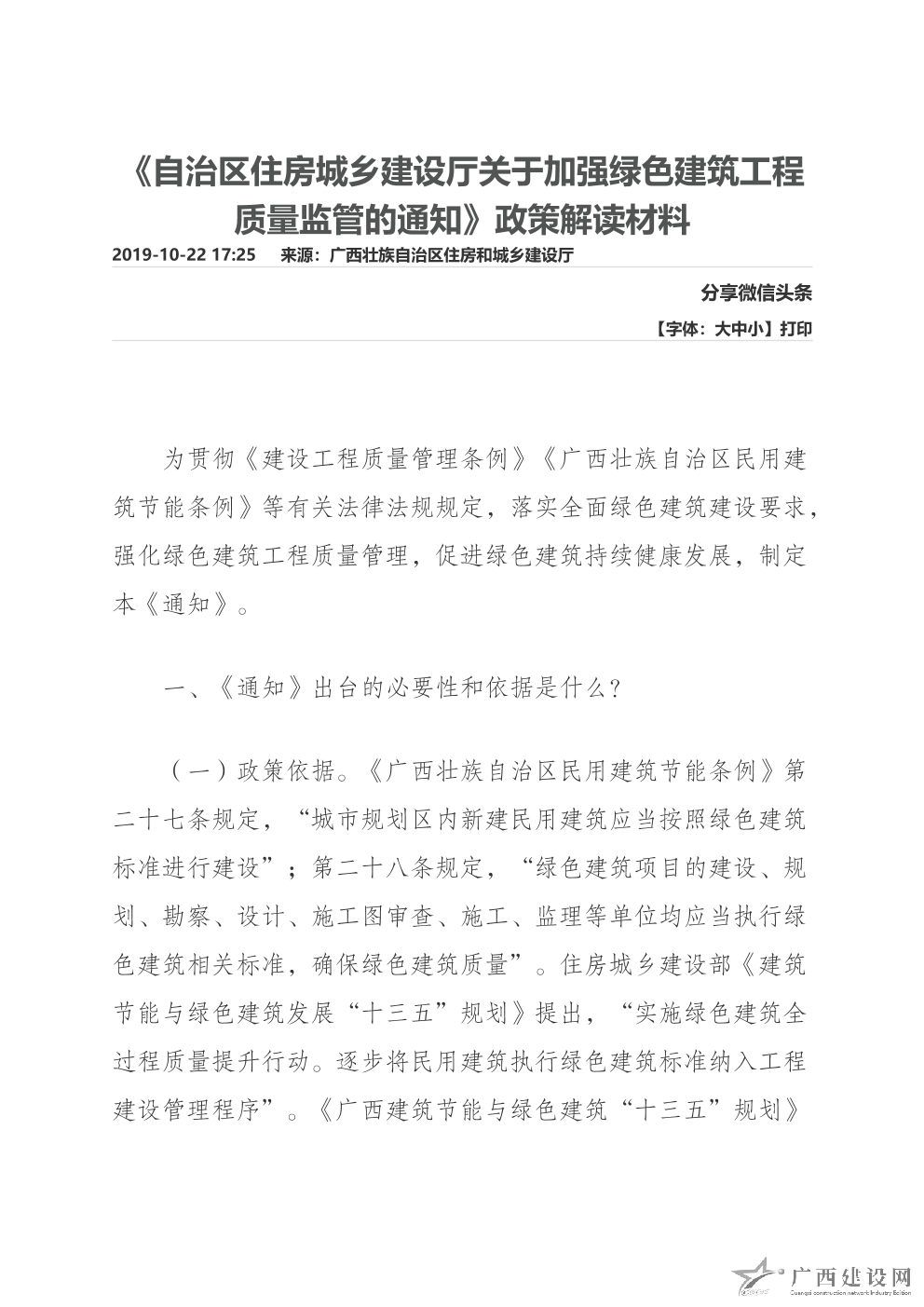 《自治區住房城鄉建設廳關于加強綠色建筑工程質量監管的通知》政策解讀材料