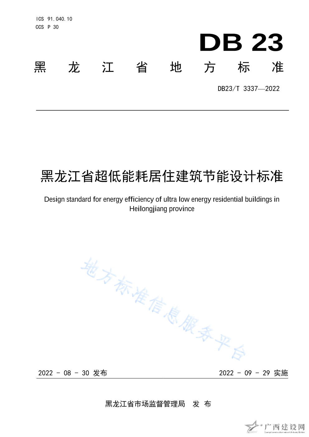 DB23 T 3337—2022黑龍江省超低能耗居住建筑節(jié)能設(shè)計標(biāo)準(zhǔn)