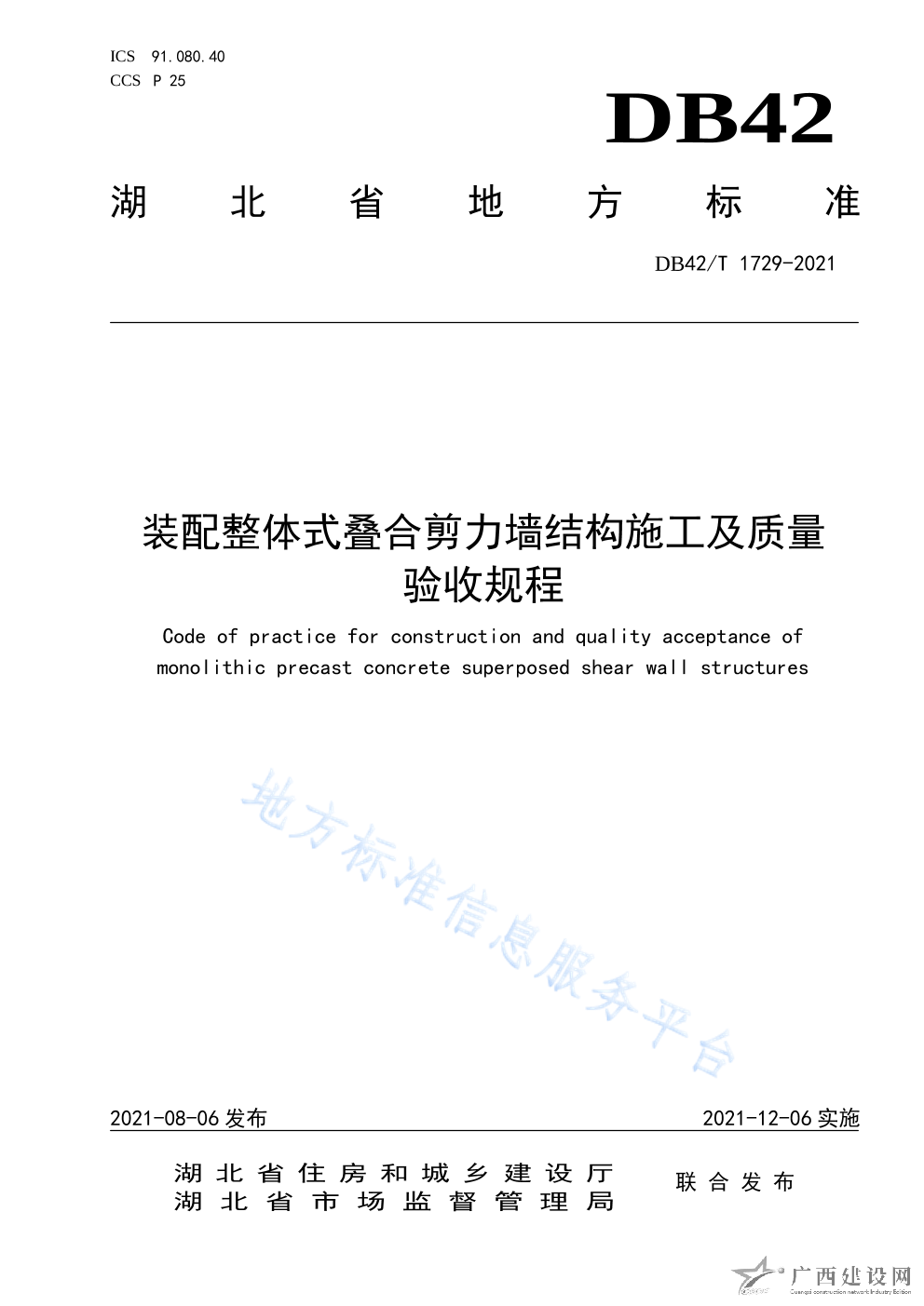 DB42 T1729-2021裝配整體式疊合剪力墻結構施工及質量驗收規程