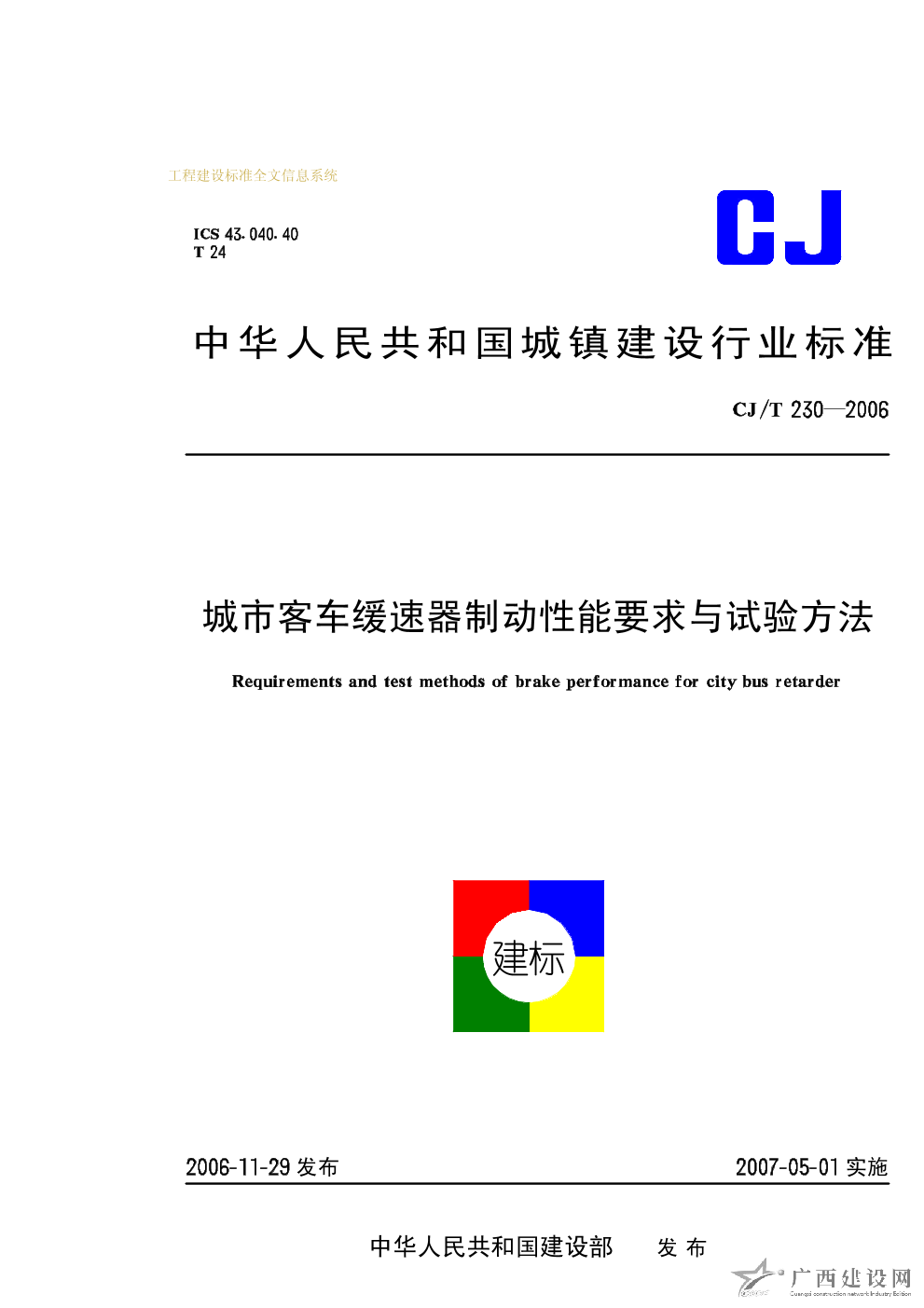 城市客車緩速器制動性能要求與試驗方法 CJ/T230-2006