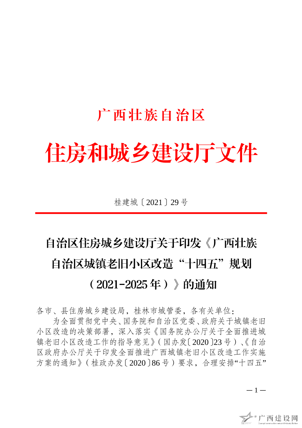 《廣西壯族自治區(qū)城鎮(zhèn)老舊小區(qū)改造“十四五”規(guī)劃(2021-2025年)》