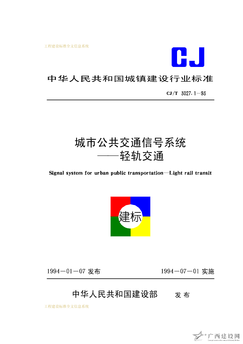 城市公共交通信號(hào)系統(tǒng)——輕軌交通 CJ/T3027.1-93