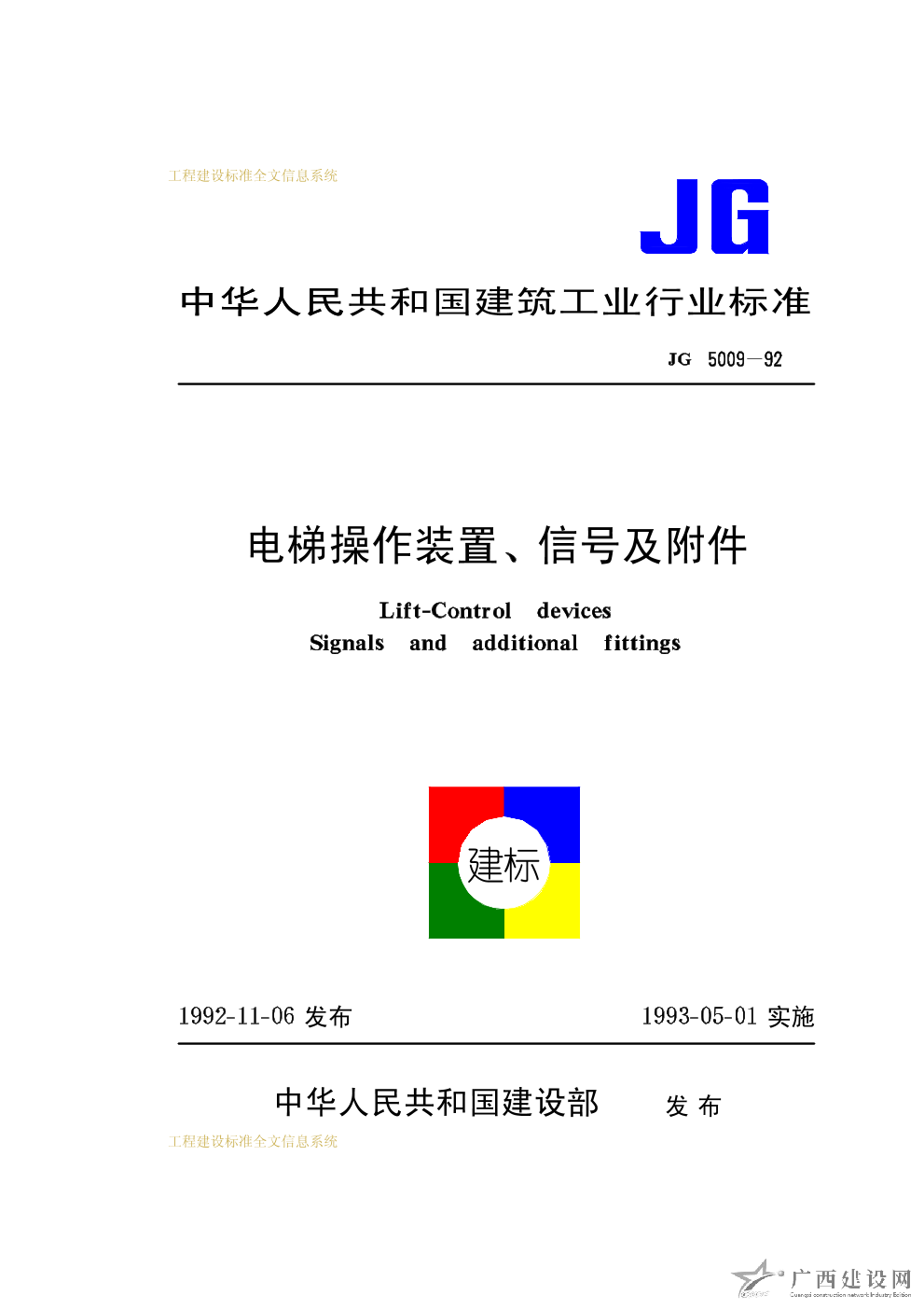 住宅電梯的配置和選擇 JG/T5010-92