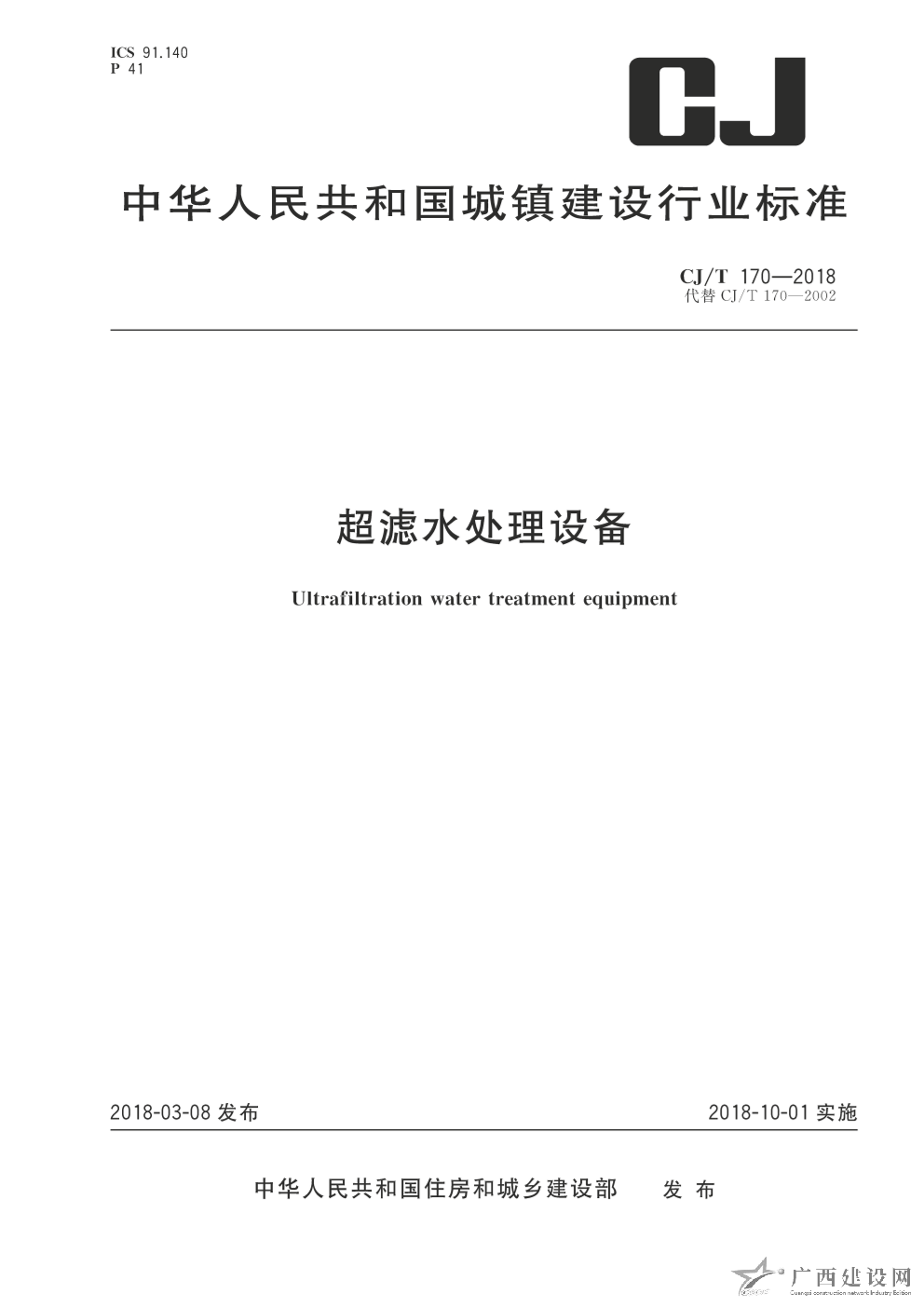 CJ-T530-2018:飲用水處理用浸沒式中空纖維超濾膜組件及裝置