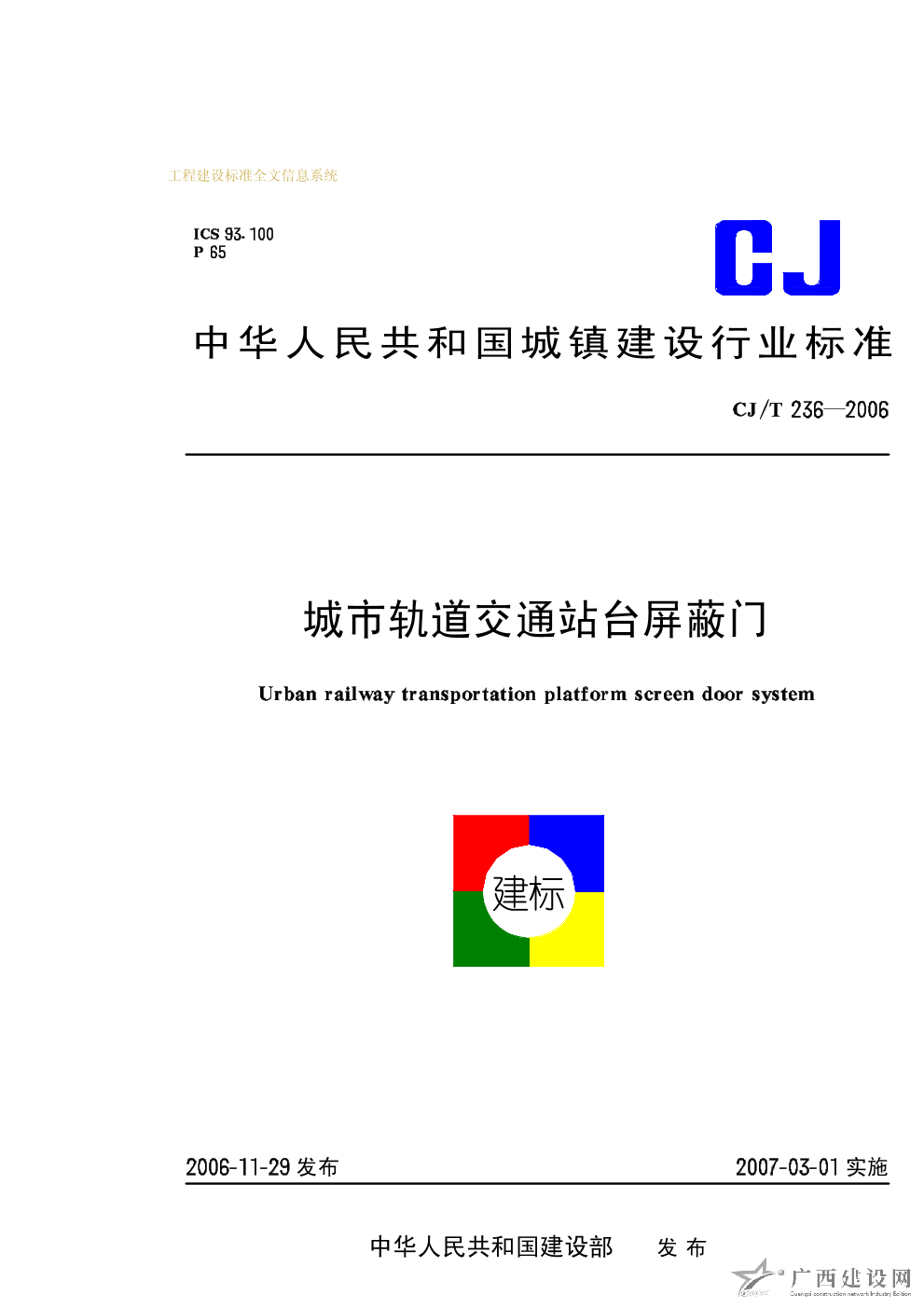 城市軌道交通站臺屏蔽門 CJ/T236-2006