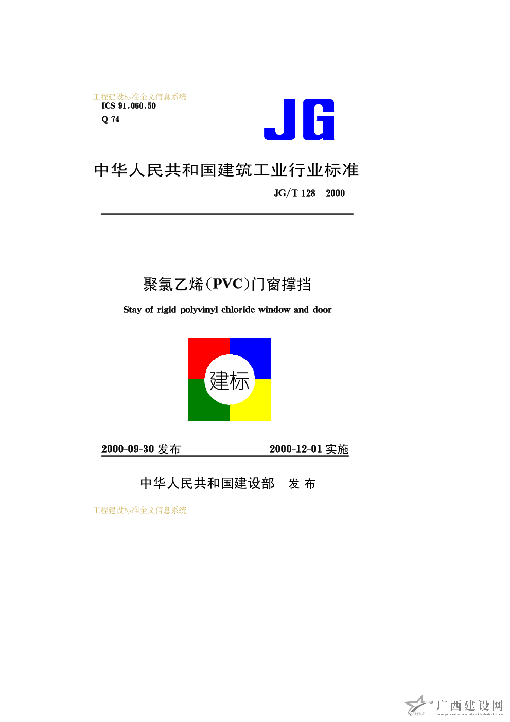 聚氯乙烯(PVC)門窗撐擋 JG/T128—2000