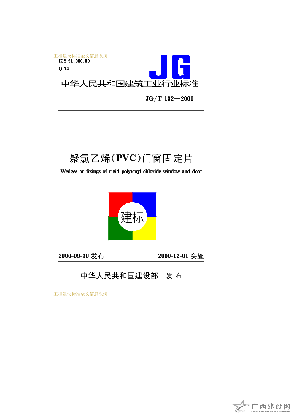 聚氯乙烯(PVC)門窗固定片 JG/T132-2000