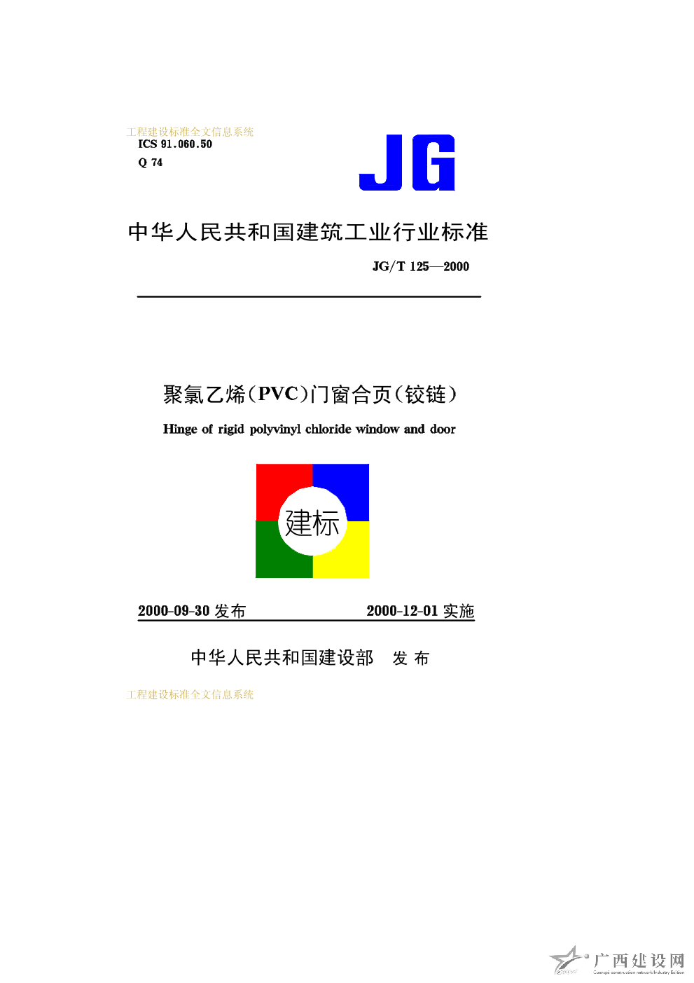 聚氯乙烯(PVC)門窗合頁(鉸鏈) JG/T125—2000