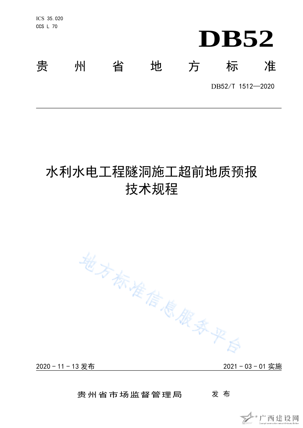 DB52 T1512-2020水利水電工程隧洞施工超前地質(zhì)預(yù)報(bào)技術(shù)規(guī)程