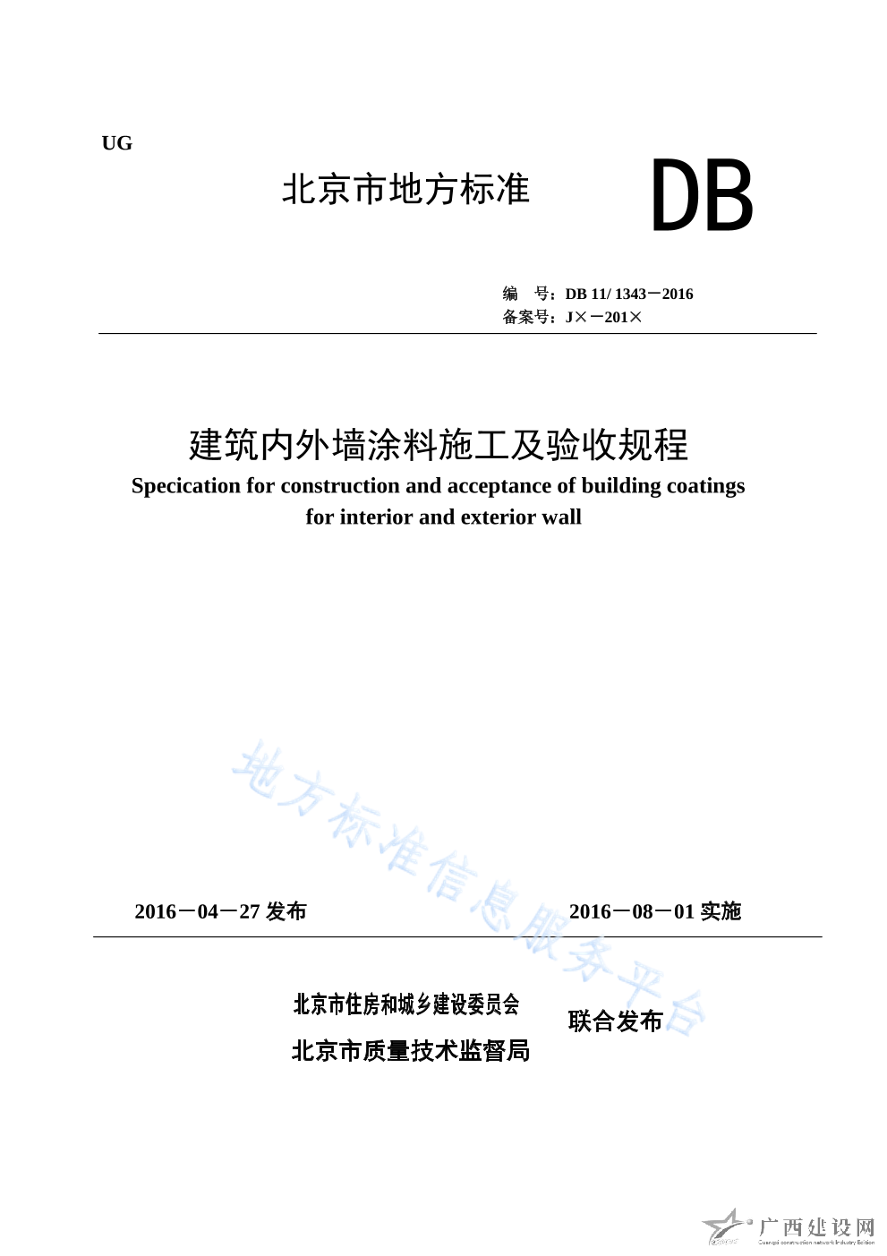 DB11 T_1343-2016建筑內外墻涂料施工及驗收規程
