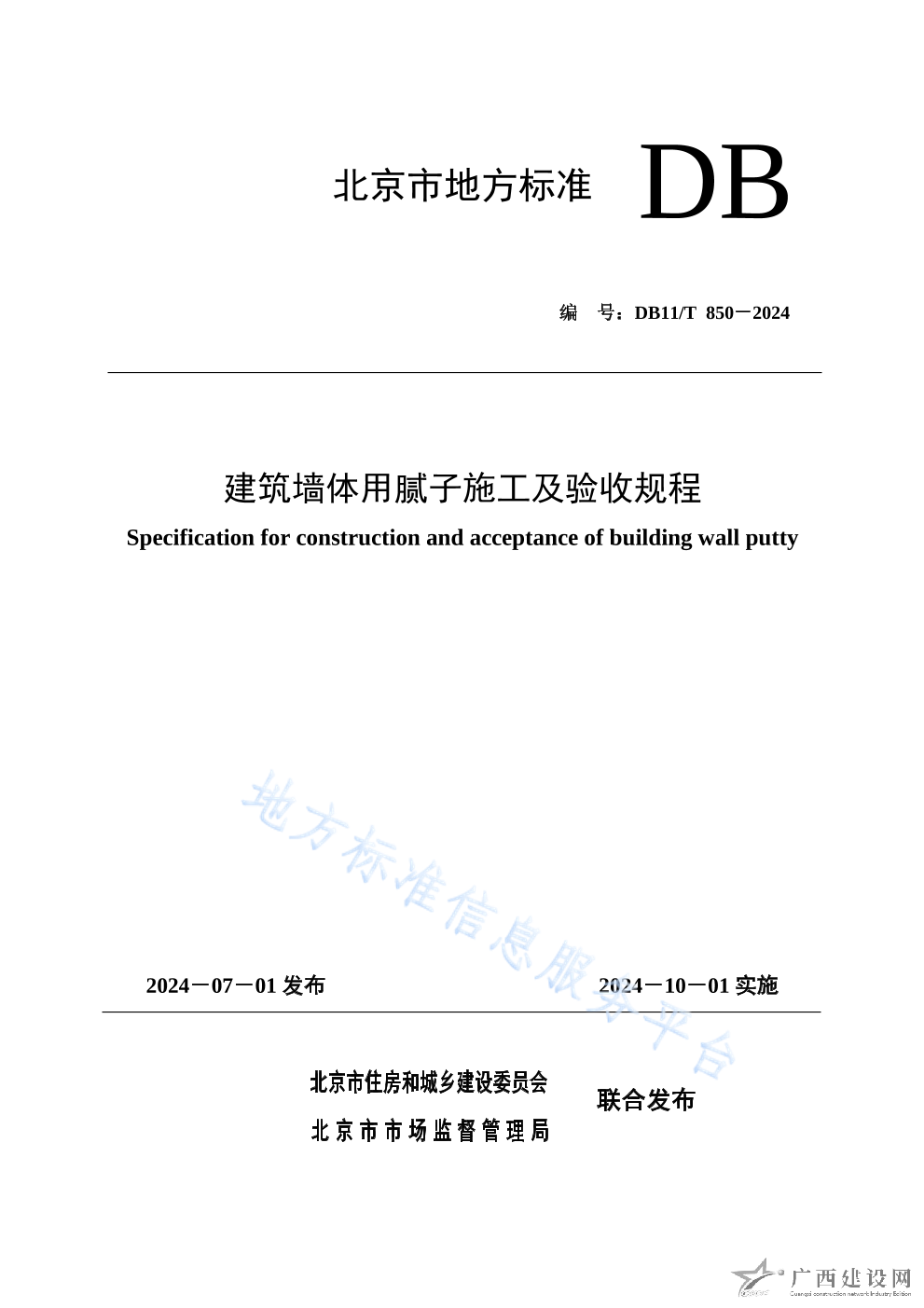 DB11T 850-2024建筑墻體用膩子施工及驗收規程