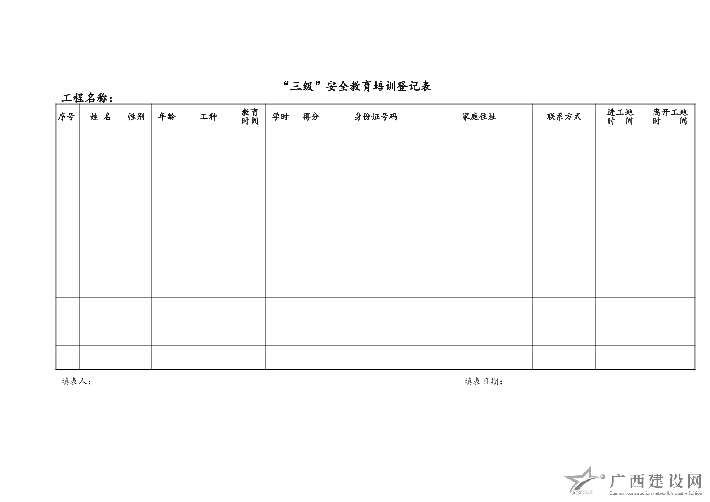 職工安全生產(chǎn)教育培訓(xùn)記錄表