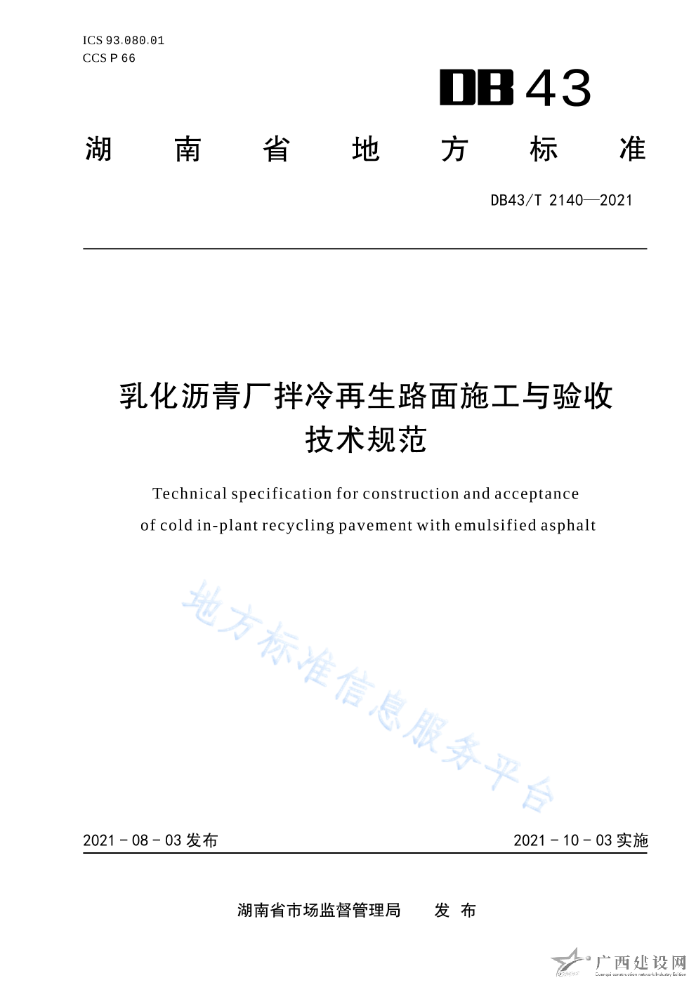 DB15 T2281-2021寒冷地區公路瀝青路面乳化瀝青廠拌冷再生技術規范