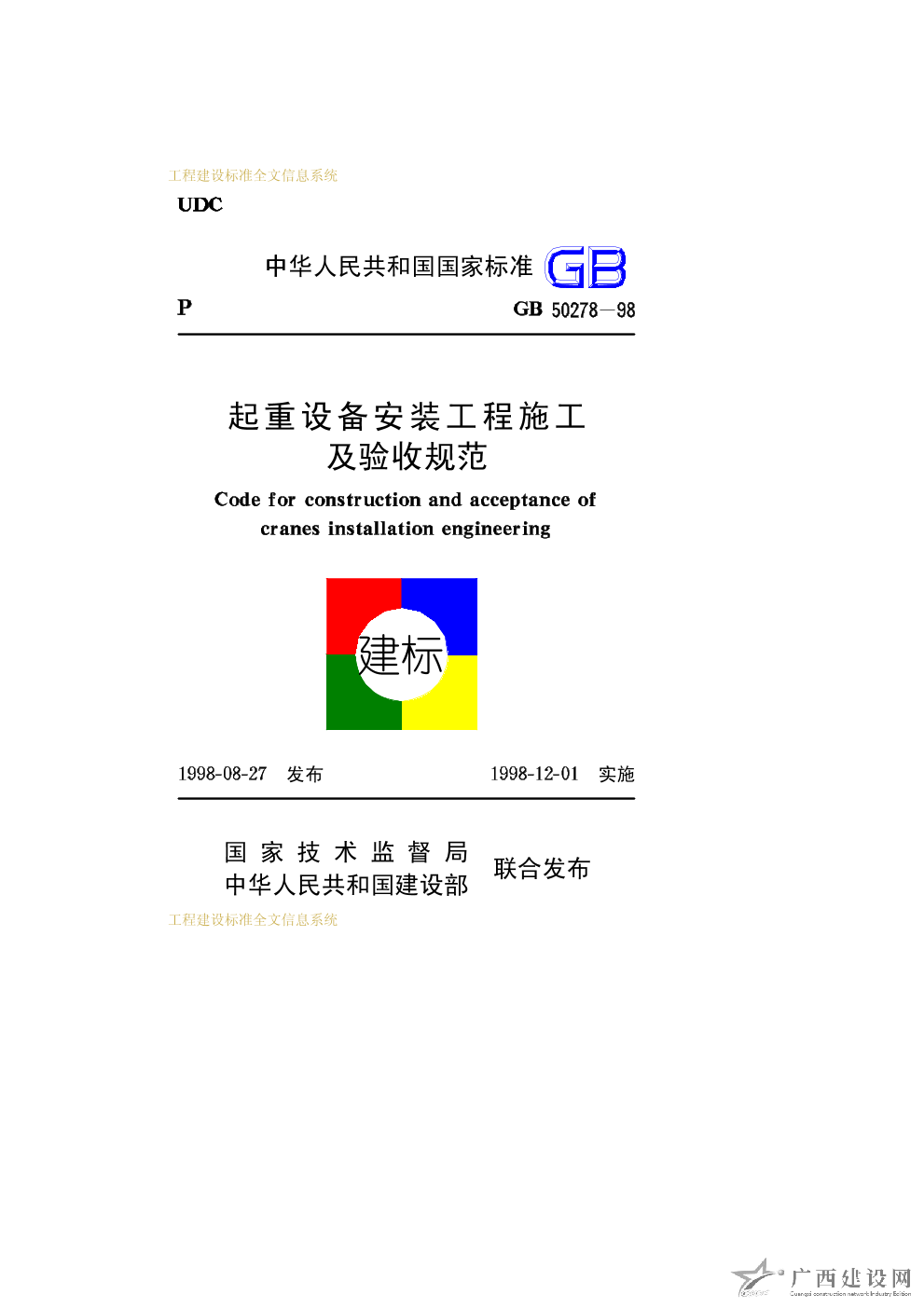 起重設(shè)備安裝工程施工及驗(yàn)收規(guī)范 GB50278-98
