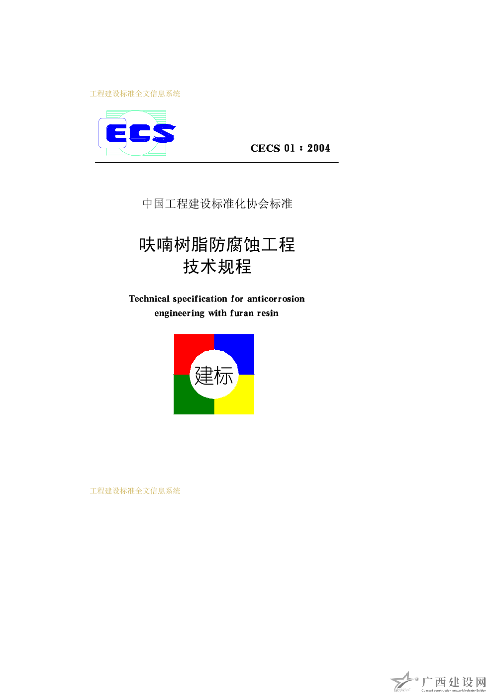 呋喃樹脂防腐蝕工程技術(shù)規(guī)程 CECS01∶2004