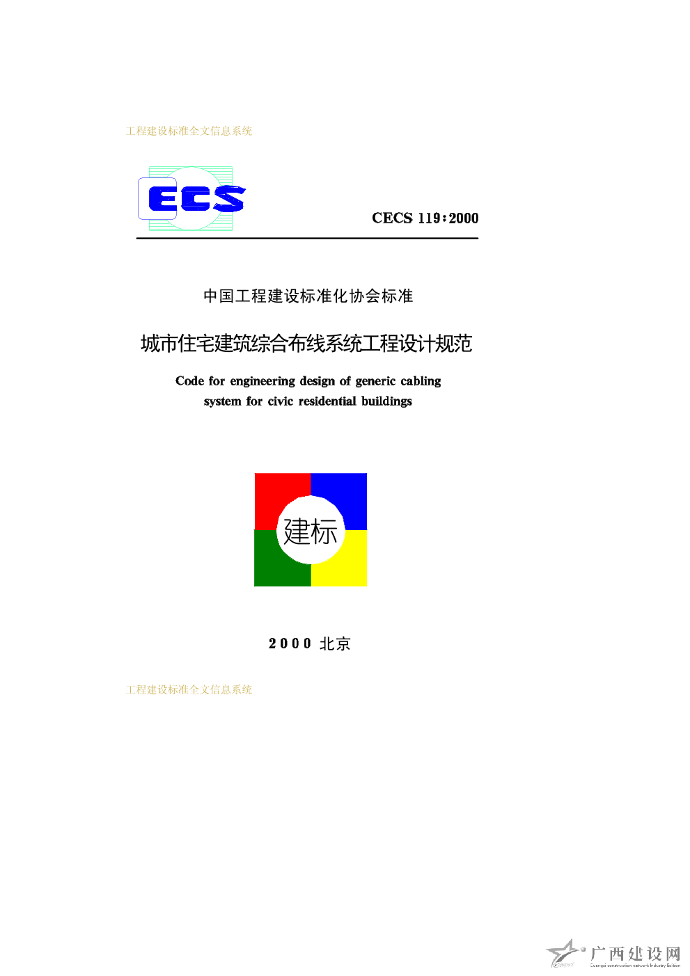 城市住宅建筑綜合布線系統(tǒng)工程設(shè)計規(guī)范 CECS119∶2000