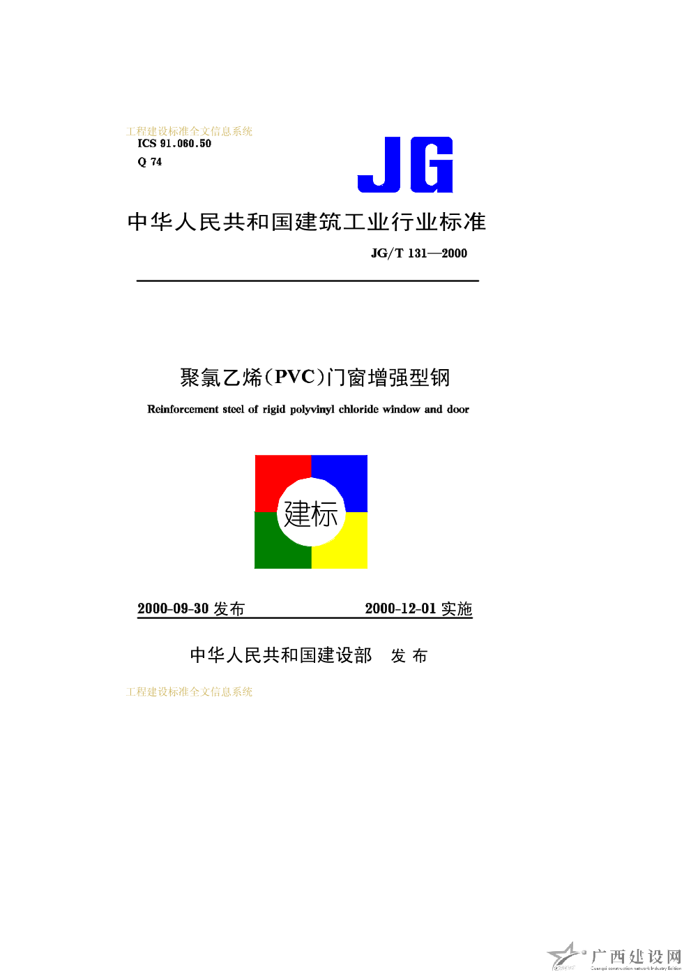 聚氯乙烯(PVC)門窗增強型鋼 JG/T131—2000