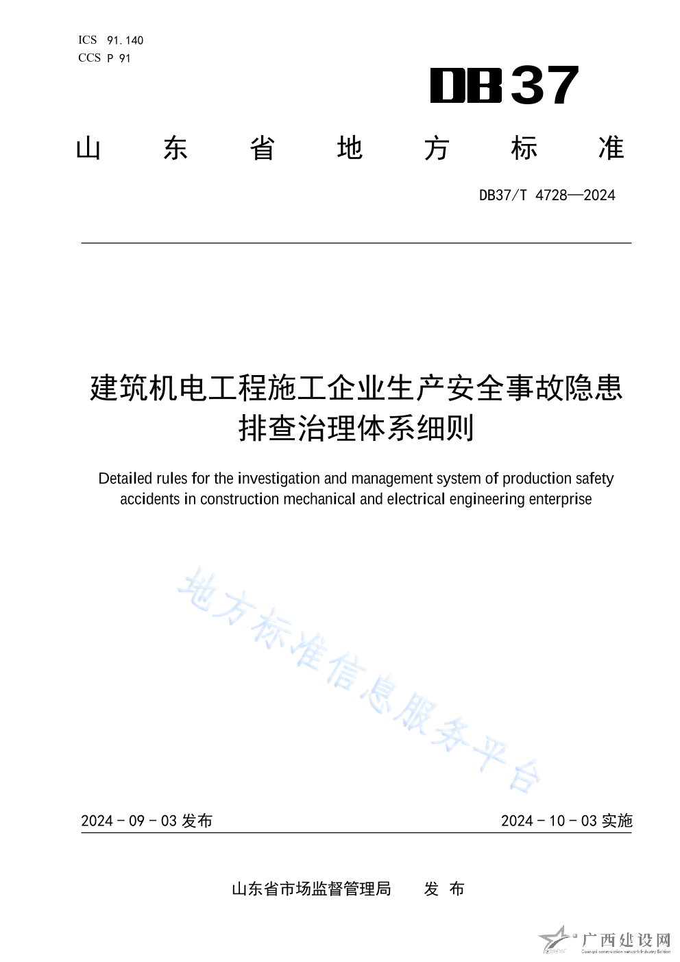 DB37T 4728-2024建筑機電工程施工企業生產安全事故隱患排查治理體系細則_地方標準