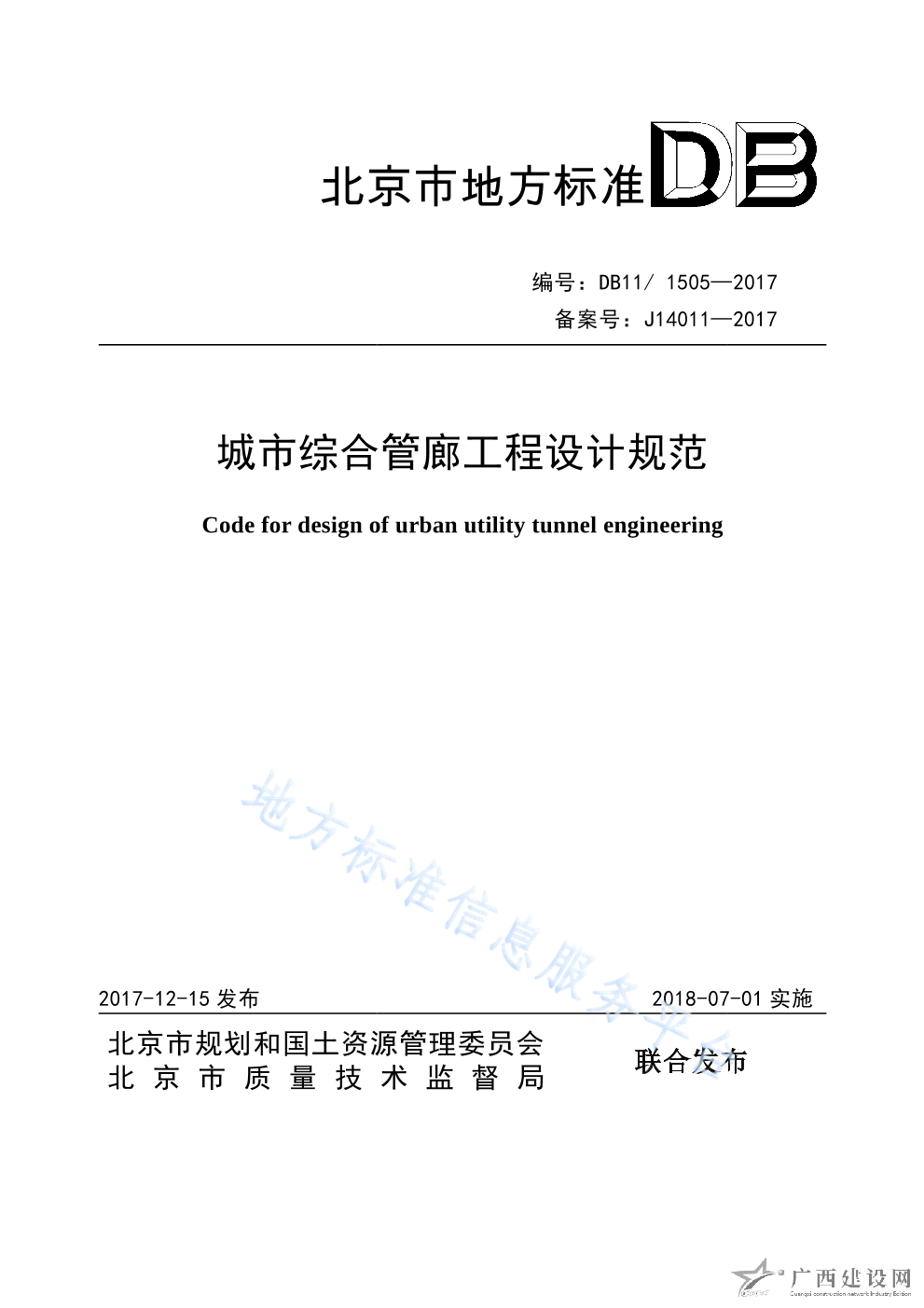 DB11 _1505-2017城市綜合管廊工程設計規范