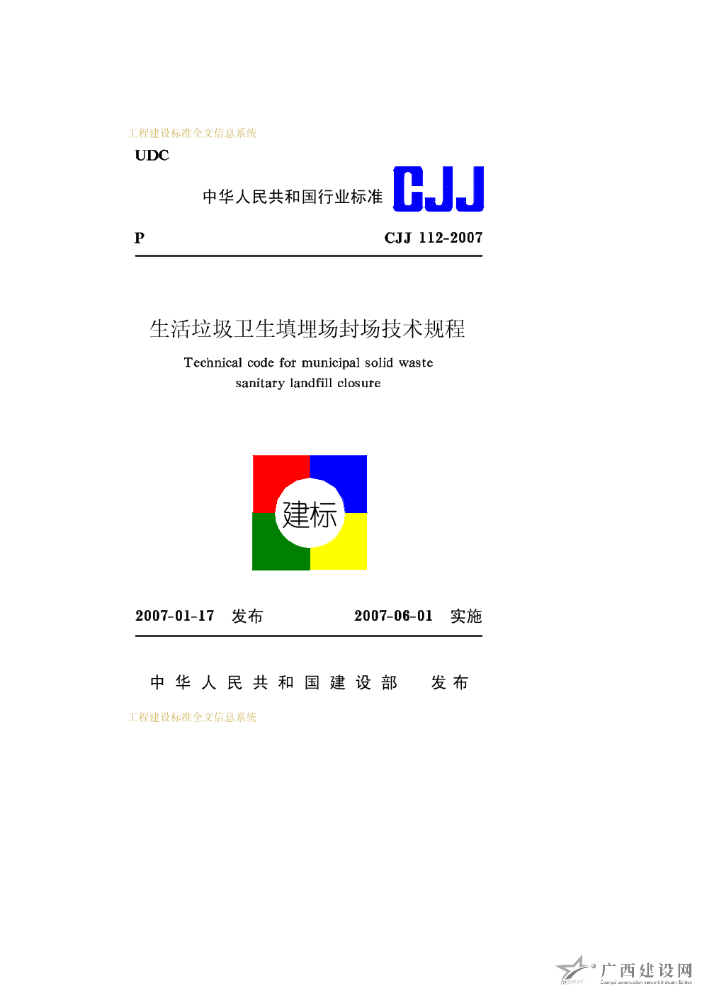 生活垃圾衛生填埋場封場技術規程 CJJ112-2007