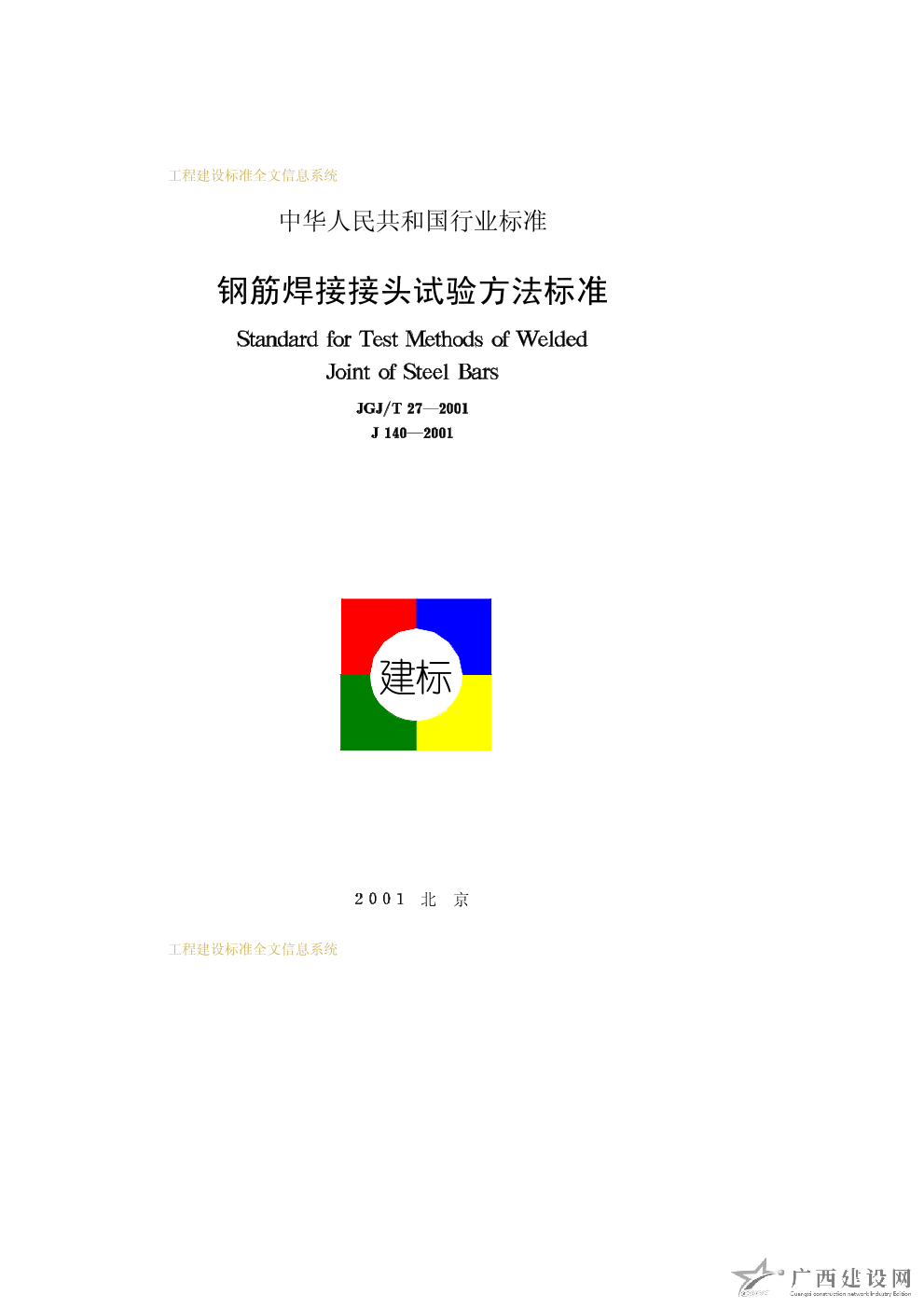 鋼筋焊接接頭試驗方法標(biāo)準(zhǔn) JGJ/T27—2001