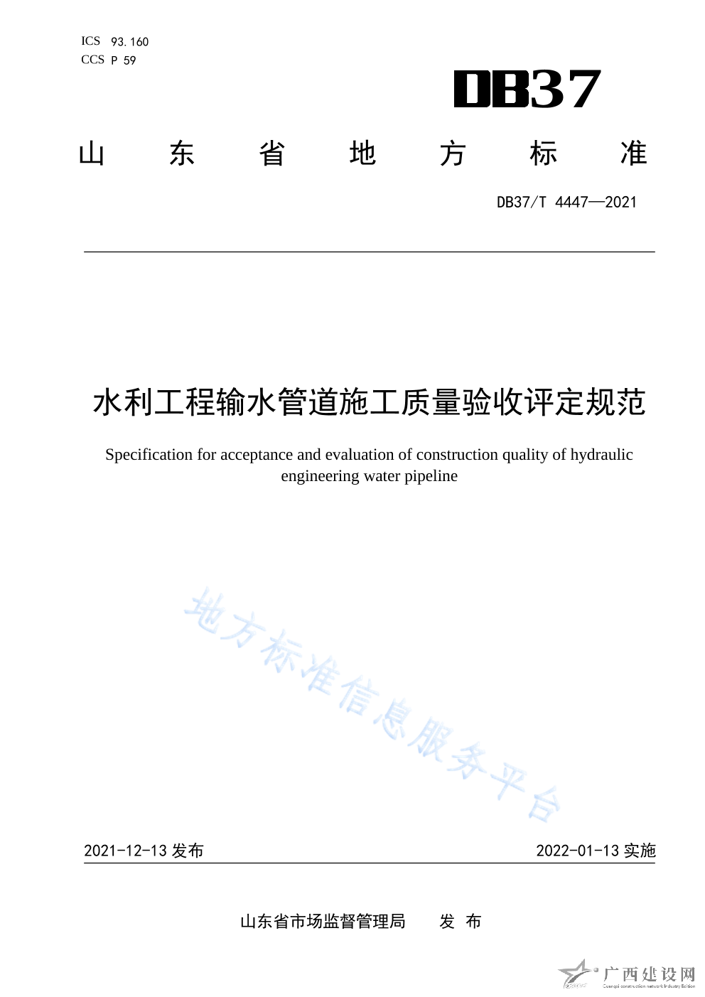 DB21 T3117-2019水利工程單元工程施工質量檢驗與評定標準—輸水管道工程