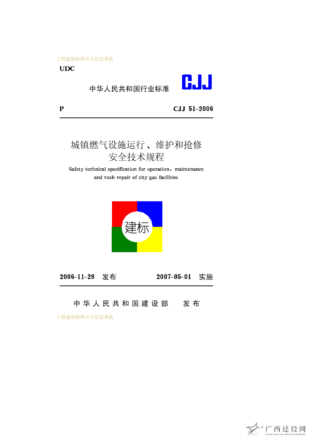 城鎮(zhèn)燃?xì)庠O(shè)施運(yùn)行、維護(hù)和搶修安全技術(shù)規(guī)程 CJJ51-2006