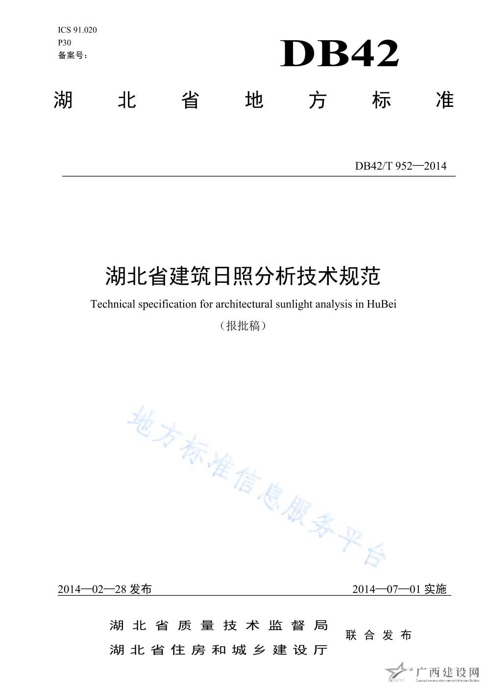 DB42 T952-2014湖北省建筑日照分析技術(shù)規(guī)范
