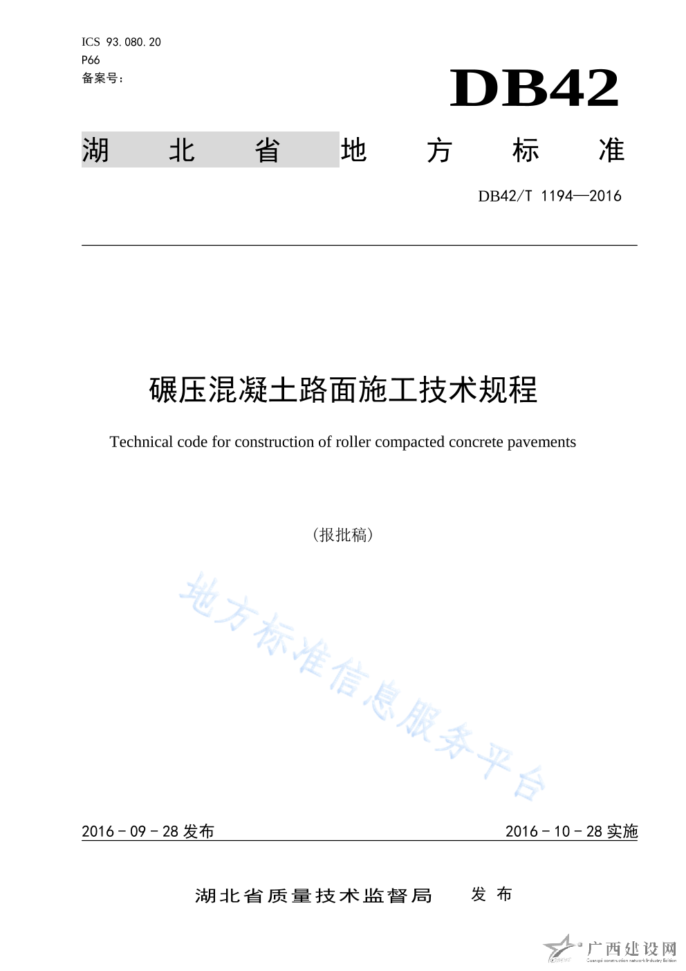 DB42 T1194-2016碾壓混凝土路面施工技術(shù)規(guī)程