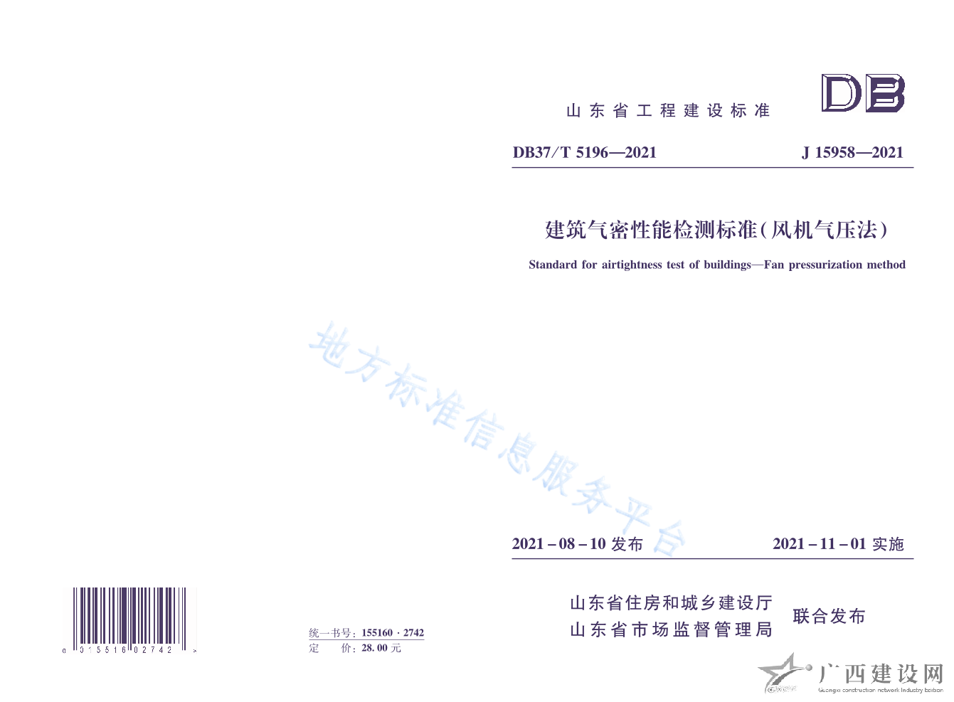 DB37 T5196-2021建筑氣密性能檢測標準(風機氣壓法)