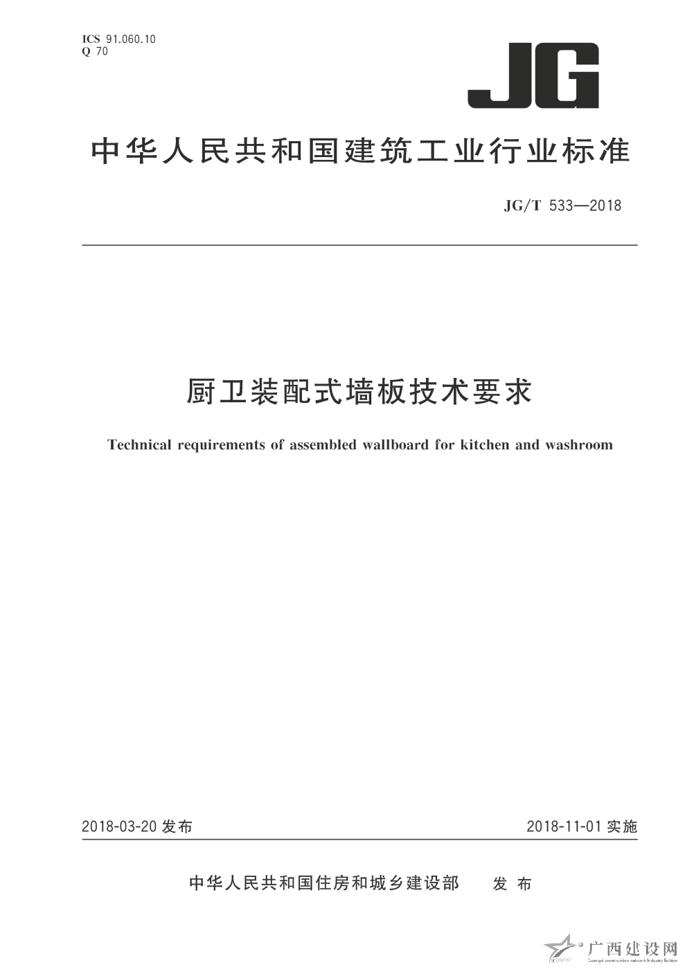 JG-T533-2018:廚衛裝配式墻板技術要求